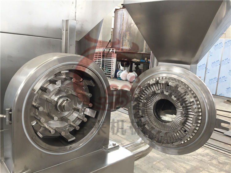本机组利用活动齿盘和固定齿盘间的相对运动,使物料经齿冲击、摩擦及物料彼此间;冲击而获得粉碎。粉碎好的物料经旋转离心力的作用自动进入捕食袋,粉尘由吸尘箱经布袋过滤回收。该机按“GMP”标准设计,全部用不锈钢材料制造,生产过程中无粉尘飞扬。且能提高物料的利用率,降低企业成本,目前已达到^。